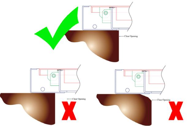● 确保腔室开口周围的阀座区域清洁,没有任何碎屑和灰尘;必要时用水冲洗。未能充分清洁座椅区域可能导致安装不令人满意。